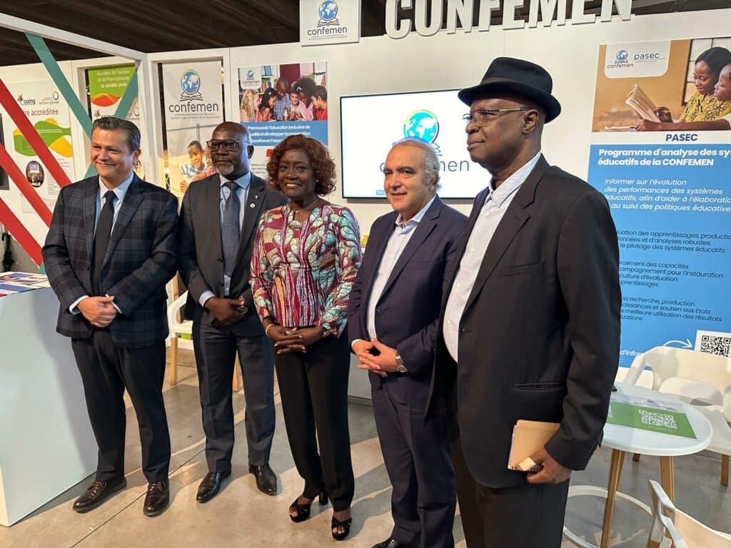Lors de leur visite, la ministre de l’Éducation de Côte d’Ivoire, Présidente en exercice de la CONFEMEN, Pr. Mariatou KONÉ, et l’ancien ministre de l’Éducation du Sénégal et ancien Président de la CONFEMEN, M. Kalidou DIALLO, ont félicité la CONFEMEN pour son rôle d’aide au pilotage des systèmes éducatifs. D’autres personnalités, comme M. Borhene CHAKROUN, directeur des politiques éducatives de l’UNESCO, et Carlos VARGAS TAMEZ, chef du Secrétariat de l’équipe spéciale internationale sur les enseignants, ont également visité le stand, exprimant leur reconnaissance pour les efforts de la CONFEMEN dans l’amélioration de la qualité des apprentissages et la transformation de la profession enseignante.