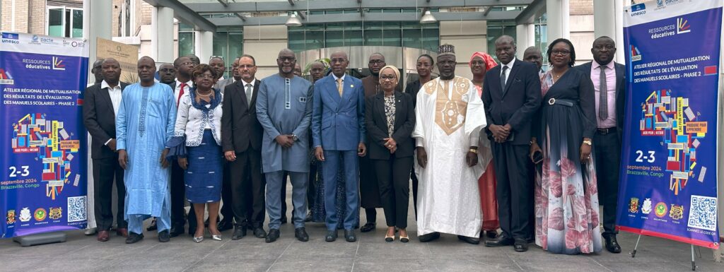 L’atelier régional de mutualisation des résultats de la phase 2 de l’évaluation de la qualité des manuels scolaires s’est tenu les 2 et 3 septembre 2024 à Brazzaville au Congo, sous la présidence du ministre de l’Enseignement préscolaire, primaire, secondaire et de l’Alphabétisation du Congo, M. Jean Luc MOUTHOU.